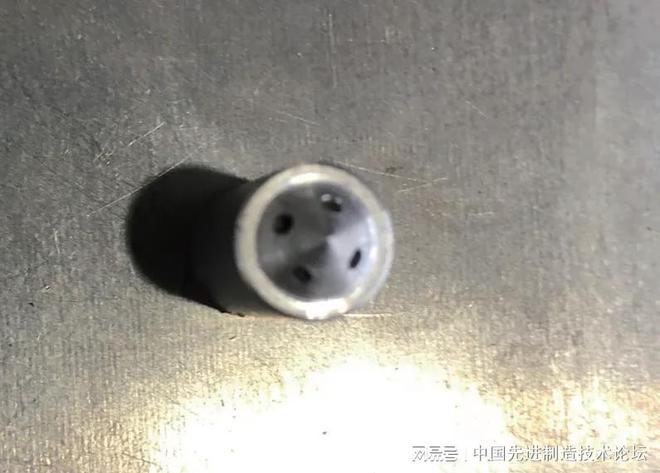 微小孔钻削时,钻头的进给应该灵活控制,操作人员应集中精力,随时注意手上的感觉,当感到进给力增大时,要及时控制钻头退出,清理切屑,如果切屑清理后仍需要较大的进给力,说明钻头磨损严重,需要修磨或更换钻头,以避免钻头因较大的切削力而折断。微小孔即将钻透时,由于切削深度发生变化而导致切削力减小,容易发生“扎刀”现象而导致钻头折断,此时应减小进给力,轻扶钻床手柄,控制好钻头的平稳进给,使钻头不会因进给过快而折断。图4所示为微小孔加工完成后的阀芯零件。
