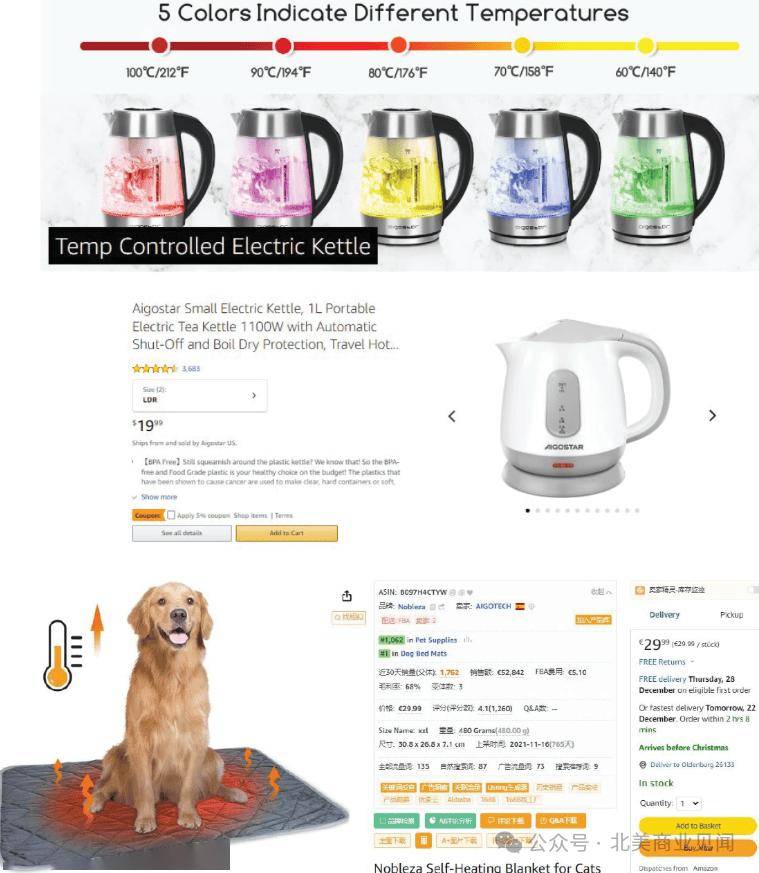 招股书显示,从在亚马逊平台的零售量来看,爱购控股的两类照明产品在西班牙排行居首、一类电器产品在西班牙夺冠,宠物用品中则有四个品类在西班牙位列第一。其他类型的产品在西班牙或意大利零售量均排名靠前。