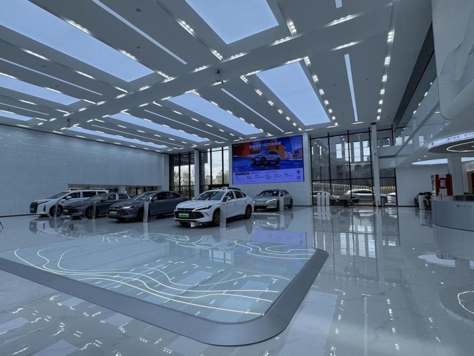 当你走近全新升级的王者灵霄形象店,首先映入眼帘的是极具现代感与科技感的外观设计。流畅的线条勾勒出简洁大气的轮廓,醒目的比亚迪标识在阳光下熠熠生辉,仿佛在向人们诉说着品牌的辉煌与荣耀。全新的外观设计不仅提升了店面的辨识度,更彰显出比亚迪作为新能源汽车领军者的创新精神与科技实力。