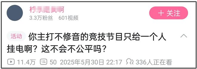 不得不说粉丝的脑回路确实很奇葩,如果这是一档没有任何竞技性质的综艺,修音就修音了,但问题是这一期比赛,只有断眉一个人被听出来了挂电,这从本质上就对其他歌手不公平。